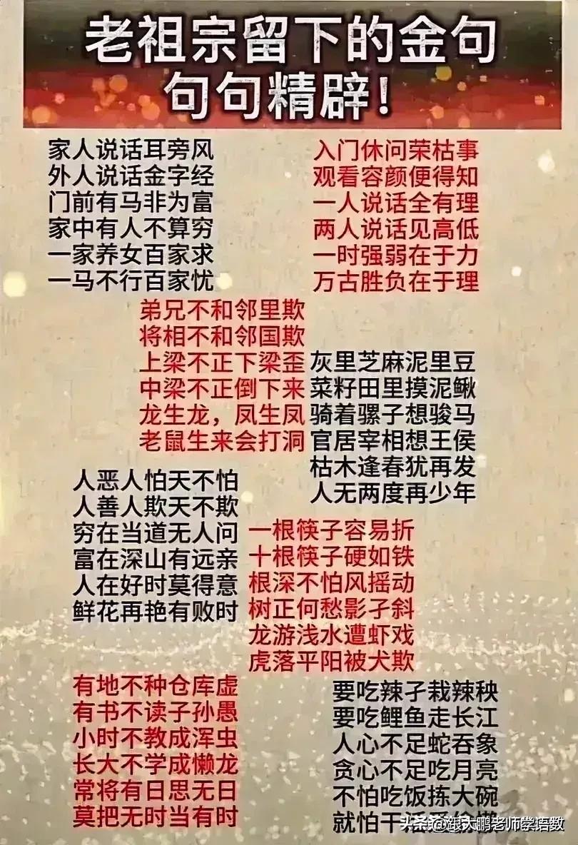 真的是涨知识了!老祖宗留下的这些金句,真是字字珠玑,句句精辟,没有比这更专业更贴心的整理了!
